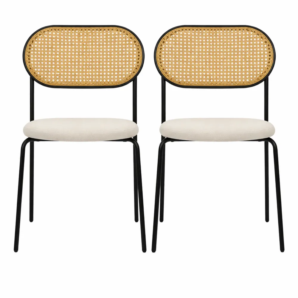 Ravviva la tua sala da pranzo con questo set di sedie dal design contemporaneo. Il design della sedia in rattan è semplice e l'ergonomia della seduta e dello schienale si adatta alle curve del corpo. Lo schienale è realizzato in rattan PE intrecciato con strutture che lo rendono robusto. Il cuscino di seduta è riempito di spugna ad alta densità. Con un'altezza della seduta di 46 cm e una profondità di 39 cm, queste sedie offrono comfort per ore di seduta. La struttura in metallo verniciato a polvere garantisce resistenza all'usura e stabilità. Design senza braccioli che consente di sfruttare al meglio lo spazio limitato. Adatte a vari ambienti abitativi come uffici, ristoranti, camere da letto o soggiorni.
